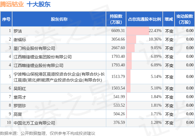 根据腾远钴业2025年中报公布的十大股东详情如下: