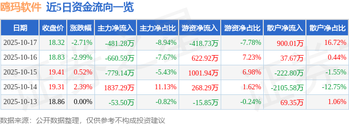 证券之星消息,截至2025年10月17日收盘,鸥玛软件(301185)报收于18.32元,下跌2.71%,换手率2.07%,成交量2.89万手,成交额5383.3万元。