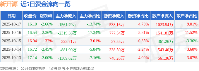 证券之星消息,截至2025年10月17日收盘,新开源(300109)报收于16.1元,下跌2.66%,换手率1.55%,成交量6.97万手,成交额1.14亿元。