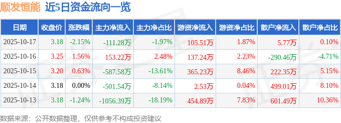 证券之星消息,截至2025年10月17日收盘,顺发恒能(000631)报收于3.18元,下跌2.15%,换手率0.73%,成交量17.55万手,成交额5651.68万元。