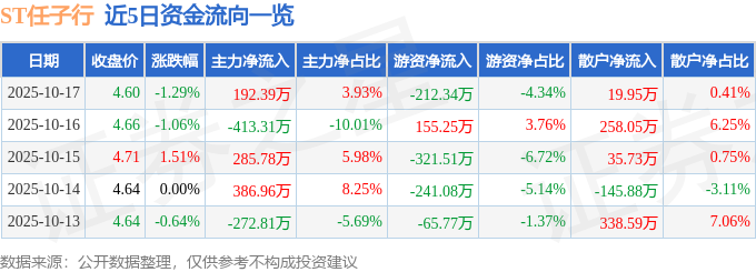 10月17日的资金流向数据方面,主力资金净流入192.39万元,占总成交额3.93%,游资资金净流出212.34万元,占总成交额4.34%,散户资金净流入19.95万元,占总成交额0.41%。