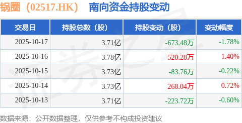 证券之星消息,10月17日南向资金减持673.48万股锅圈(02517.HK)。近5个交易日中,获南向资金减持的有3天,累计净减持192.64万股。近20个交易日中,获南向资金增持的有10天,累计净增持1592.76万股。截至目前,南向资金持有锅圈(02517.HK)3.71亿股,占公司已发行普通股的13.5%。