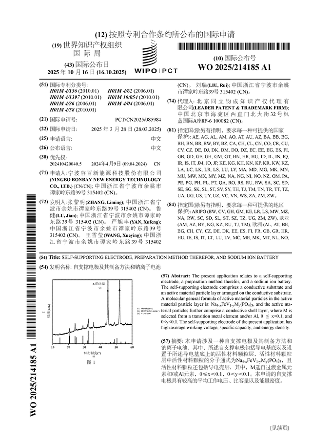 证券之星消息,根据企查查数据显示容百科技(688005)公布了一项国际专利申请,专利名为“自支撑电极及其制备方法和钠离子电池”,专利申请号为PCT/CN2025/085984,国际公布日为2025年10月16日。