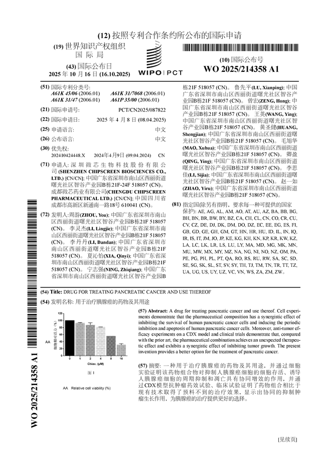 证券之星消息,根据企查查数据显示微芯生物(688321)公布了一项国际专利申请,专利名为“用于治疗胰腺癌的药物及其用途”,专利申请号为PCT/CN2025/087822,国际公布日为2025年10月16日。