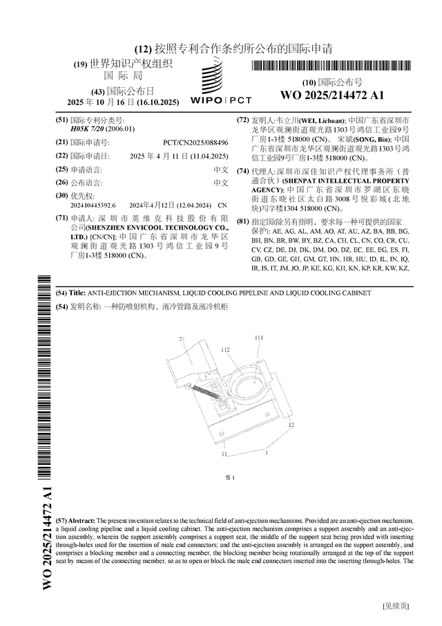 证券之星消息,根据企查查数据显示英维克(002837)公布了一项国际专利申请,专利名为“一种防喷射机构、液冷管路及液冷机柜”,专利申请号为PCT/CN2025/088496,国际公布日为2025年10月16日。