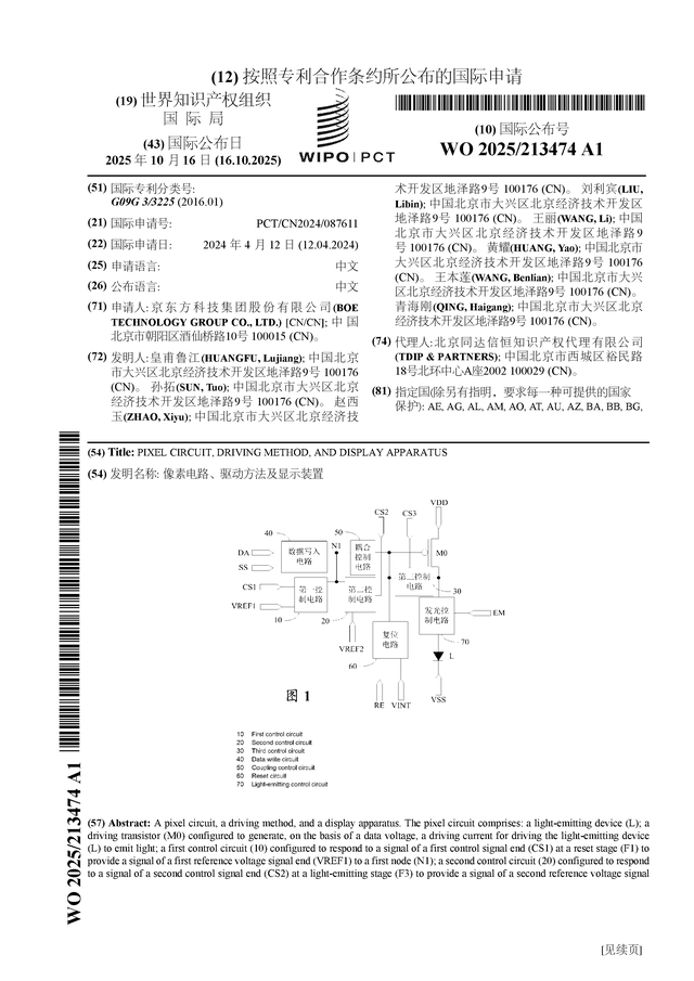 证券之星消息,根据企查查数据显示京东方A(000725)公布了一项国际专利申请,专利名为“像素电路、驱动方法及显示装置”,专利申请号为PCT/CN2024/087611,国际公布日为2025年10月16日。