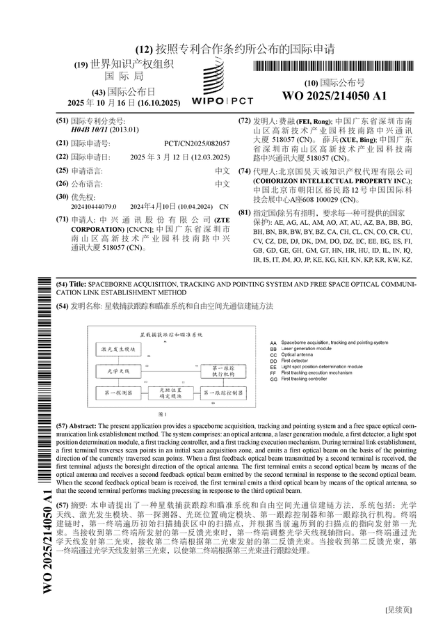 证券之星消息,根据企查查数据显示中兴通讯(000063)公布了一项国际专利申请,专利名为“星载捕获跟踪和瞄准系统和自由空间光通信建链方法”,专利申请号为PCT/CN2025/082057,国际公布日为2025年10月16日。