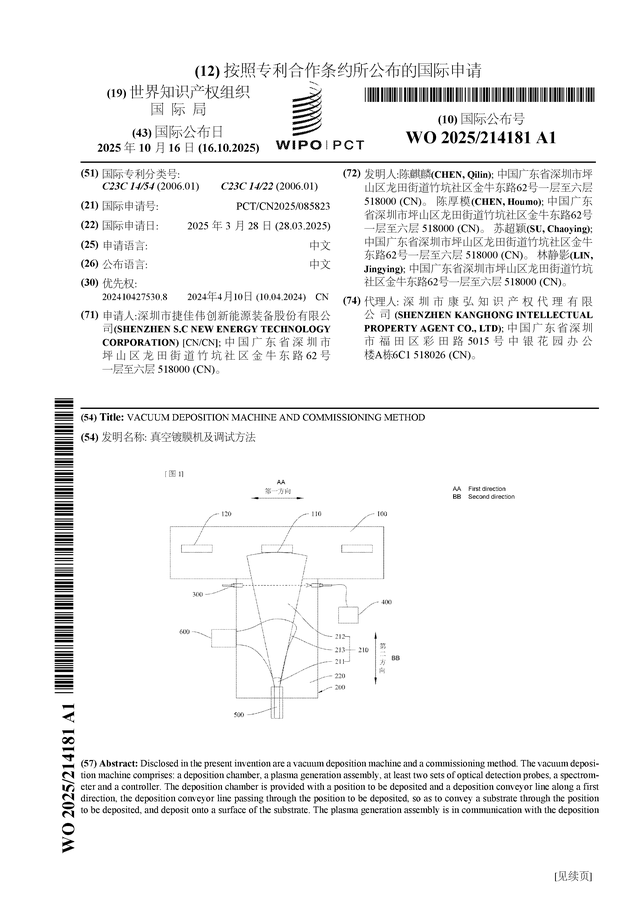 证券之星消息,根据企查查数据显示捷佳伟创(300724)公布了一项国际专利申请,专利名为“真空镀膜机及调试方法”,专利申请号为PCT/CN2025/085823,国际公布日为2025年10月16日。