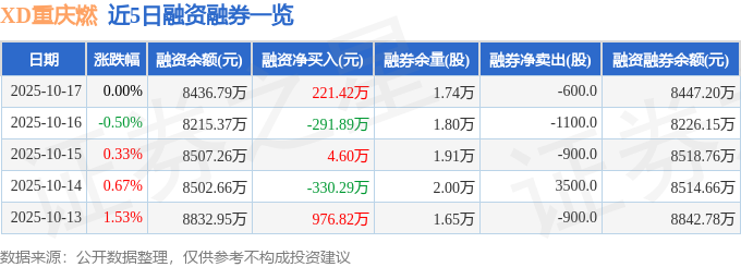 XD重庆燃融资融券信息显示,融资方面,当日融资买入871.12万元,融资偿还649.7万元,融资净买入221.42万元。融券方面,融券卖出0.0股,融券偿还600.0股,融券余量1.74万股,融券余额10.41万元。融资融券余额8447.2万元。