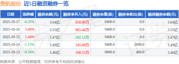 贵航股份融资融券信息显示,融资方面,当日融资买入3140.65万元,融资偿还2281.86万元,融资净买入858.8万元。融券方面,融券卖出0.0股,融券偿还0.0股,融券余量9400.0股,融券余额13.44万元。融资融券余额3.64亿元。