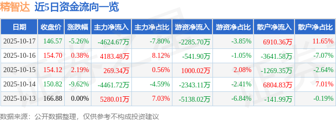 10月17日的资金流向数据方面,主力资金净流出4624.67万元,占总成交额7.8%,游资资金净流出2285.7万元,占总成交额3.85%,散户资金净流入6910.36万元,占总成交额11.65%。