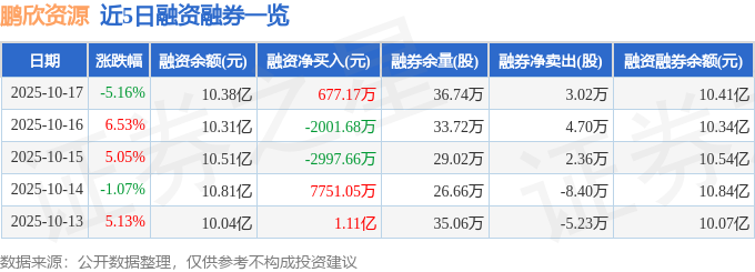鹏欣资源融资融券信息显示,融资方面,当日融资买入1.93亿元,融资偿还1.86亿元,融资净买入677.17万元。融券方面,融券卖出6.53万股,融券偿还3.51万股,融券余量36.74万股,融券余额324.05万元。融资融券余额10.41亿元。