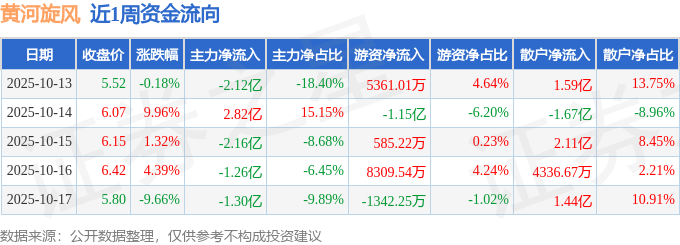 资金流向数据方面,本周黄河旋风主力资金合计净流出4.03亿元,游资资金合计净流入1363.65万元,散户资金合计净流入3.89亿元。本周资金流向一览见下表: