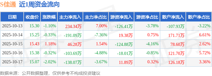 资金流向数据方面,本周S佳通主力资金合计净流出152.22万元,游资资金合计净流出238.03万元,散户资金合计净流入390.25万元。本周资金流向一览见下表: