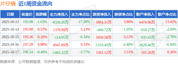 资金流向数据方面,本周片仔癀主力资金合计净流出3609.66万元,游资资金合计净流入2515.81万元,散户资金合计净流入1093.85万元。本周资金流向一览见下表:
