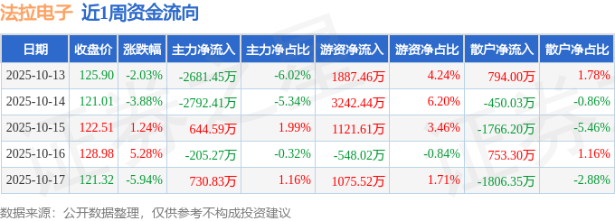 资金流向数据方面,本周法拉电子主力资金合计净流出4303.72万元,游资资金合计净流入6779.0万元,散户资金合计净流出2475.28万元。本周资金流向一览见下表: