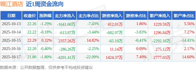 资金流向数据方面,本周锦江酒店主力资金合计净流出4385.89万元,游资资金合计净流入1099.46万元,散户资金合计净流入3286.43万元。本周资金流向一览见下表: