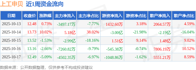 资金流向数据方面,本周上工申贝主力资金合计净流入6648.48万元,游资资金合计净流出1.51亿元,散户资金合计净流入8412.61万元。本周资金流向一览见下表: