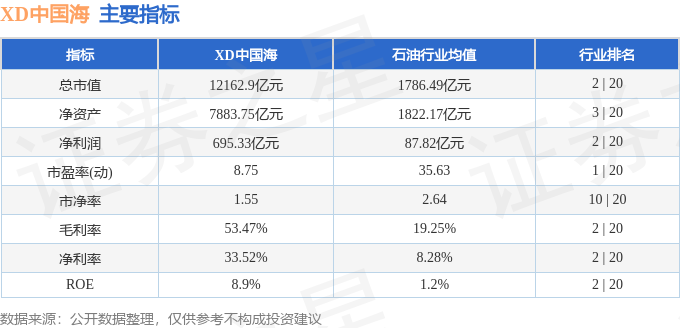 XD中国海(600938)主营业务:勘探、开发、生产及销售原油和天然气。 中国海油2025年中报显示,公司主营收入2076.08亿元,同比下降8.45%;归母净利润695.33亿元,同比下降12.79%;扣非净利润693.53亿元,同比下降12.43%;其中2025年第二季度,公司单季度主营收入1007.54亿元,同比下降12.62%;单季度归母净利润329.7亿元,同比下降17.6%;单季度扣非净利润323.26亿元,同比下降18.62%;负债率29.54%,投资收益-13.31亿元,财务费用-5.48亿元,毛利率53.47%。