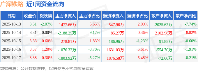 沪深股通持股方面,截止2025年10月17日收盘,广深铁路沪股通持股数为8375.87万股,占流通股比为148.0%。