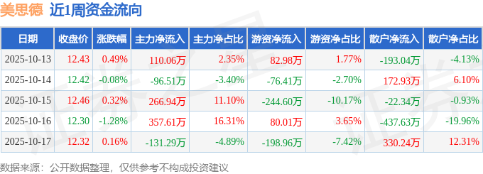 资金流向数据方面,本周美思德主力资金合计净流入506.81万元,游资资金合计净流出356.97万元,散户资金合计净流出149.84万元。本周资金流向一览见下表: