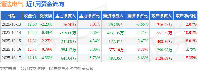 资金流向数据方面,本周通达电气主力资金合计净流出1500.74万元,游资资金合计净流出514.92万元,散户资金合计净流入2015.66万元。本周资金流向一览见下表: