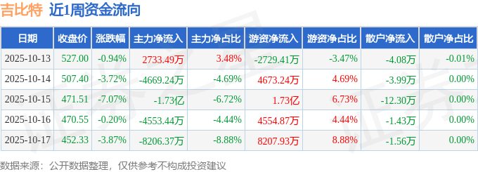 资金流向数据方面,本周吉比特主力资金合计净流出3.2亿元,游资资金合计净流入3.2亿元,散户资金合计净流出23.36万元。本周资金流向一览见下表: