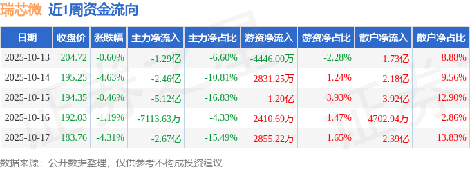 资金流向数据方面,本周瑞芯微主力资金合计净流出12.25亿元,游资资金合计净流入1.56亿元,散户资金合计净流入10.69亿元。本周资金流向一览见下表: