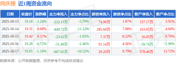 资金流向数据方面,本周同庆楼主力资金合计净流出1363.33万元,游资资金合计净流入488.34万元,散户资金合计净流入874.99万元。本周资金流向一览见下表: