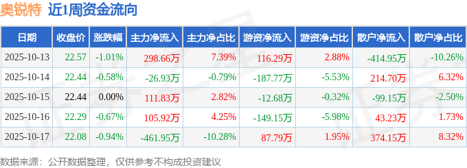 资金流向数据方面,本周奥锐特主力资金合计净流入27.54万元,游资资金合计净流出145.52万元,散户资金合计净流入117.98万元。本周资金流向一览见下表: