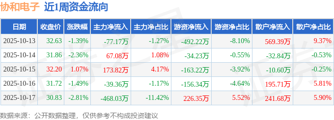 资金流向数据方面,本周协和电子主力资金合计净流出343.67万元,游资资金合计净流出619.67万元,散户资金合计净流入963.33万元。本周资金流向一览见下表:
