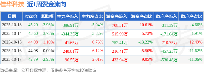 资金流向数据方面,本周佳华科技主力资金合计净流出362.25万元,游资资金合计净流入1122.24万元,散户资金合计净流出759.99万元。本周资金流向一览见下表: