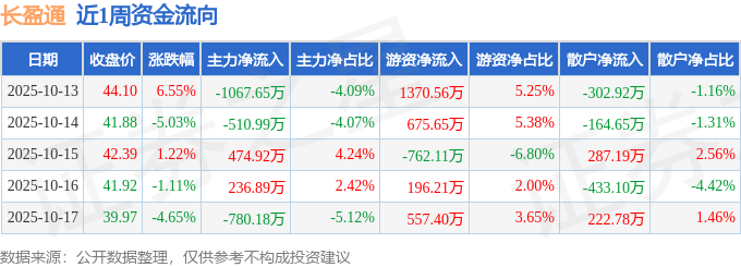 资金流向数据方面,本周长盈通主力资金合计净流出1647.01万元,游资资金合计净流入2037.71万元,散户资金合计净流出390.7万元。本周资金流向一览见下表: