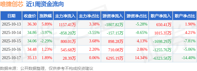 资金流向数据方面,本周唯捷创芯主力资金合计净流入1673.3万元,游资资金合计净流入5938.58万元,散户资金合计净流出7611.88万元。本周资金流向一览见下表: