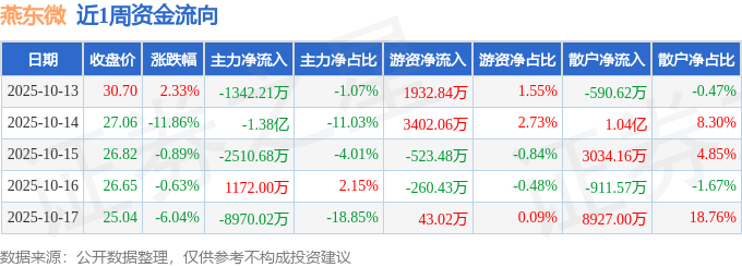 资金流向数据方面,本周燕东微主力资金合计净流出2.54亿元,游资资金合计净流入4594.01万元,散户资金合计净流入2.08亿元。本周资金流向一览见下表: