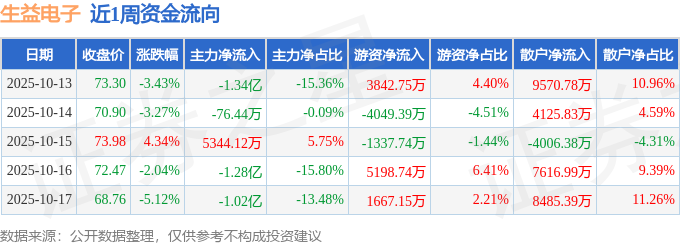 资金流向数据方面,本周生益电子主力资金合计净流出3.11亿元,游资资金合计净流入5321.51万元,散户资金合计净流入2.58亿元。本周资金流向一览见下表: