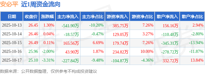 资金流向数据方面,本周安必平主力资金合计净流出578.85万元,游资资金合计净流入824.49万元,散户资金合计净流出245.64万元。本周资金流向一览见下表: