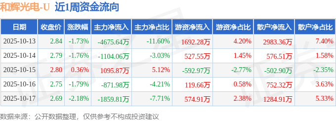 资金流向数据方面,本周和辉光电主力资金合计净流出7415.62万元,游资资金合计净流入2321.42万元,散户资金合计净流入5094.19万元。本周资金流向一览见下表: