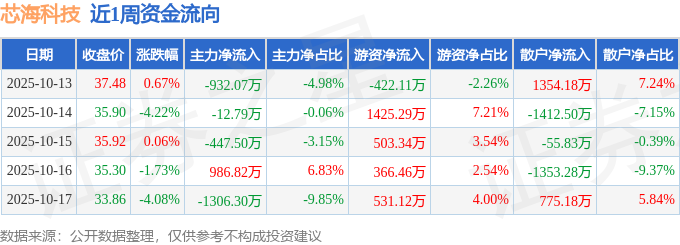 资金流向数据方面,本周芯海科技主力资金合计净流出1711.84万元,游资资金合计净流入2404.09万元,散户资金合计净流出692.25万元。本周资金流向一览见下表: