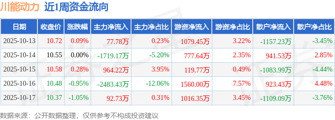 资金流向数据方面,本周川能动力主力资金合计净流出3067.87万元,游资资金合计净流入4553.21万元,散户资金合计净流出1485.34万元。本周资金流向一览见下表: