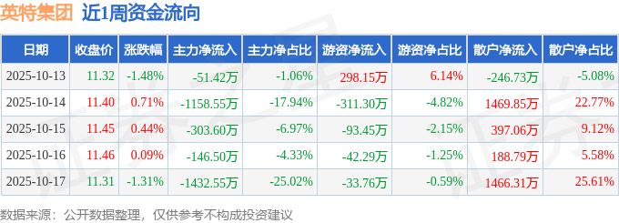 资金流向数据方面,本周英特集团主力资金合计净流出3092.63万元,游资资金合计净流出182.65万元,散户资金合计净流入3275.28万元。本周资金流向一览见下表: