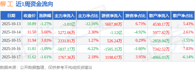 资金流向数据方面,本周柳 工主力资金合计净流出6603.91万元,游资资金合计净流出3422.52万元,散户资金合计净流入1.0亿元。本周资金流向一览见下表: