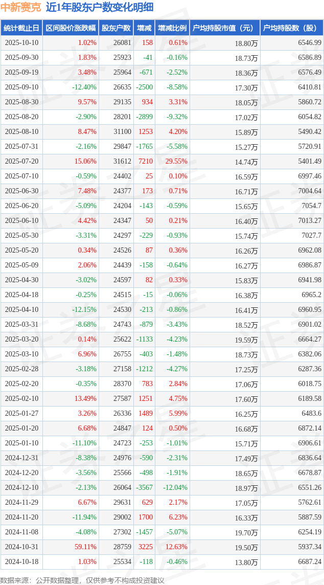 从股价来看,2025年9月30日至2025年10月10日,中新赛克区间涨幅为1.02%,在此期间股东户数增加158.0户,增幅为0.61%。