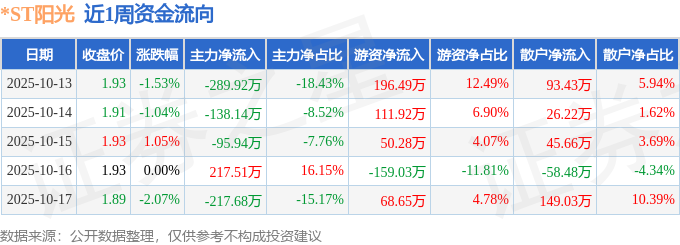 资金流向数据方面,本周*ST阳光主力资金合计净流出524.18万元,游资资金合计净流入268.31万元,散户资金合计净流入255.87万元。本周资金流向一览见下表: