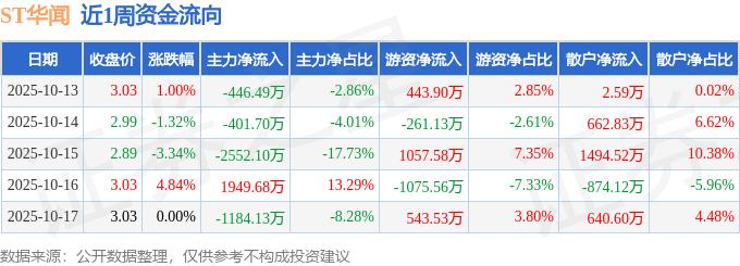 资金流向数据方面,本周ST华闻主力资金合计净流出2634.74万元,游资资金合计净流入708.32万元,散户资金合计净流入1926.42万元。本周资金流向一览见下表:
