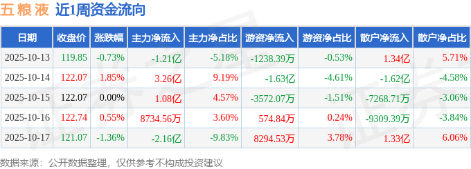 资金流向数据方面,本周五 粮 液主力资金合计净流入1.84亿元,游资资金合计净流出1.23亿元,散户资金合计净流出6111.09万元。本周资金流向一览见下表: