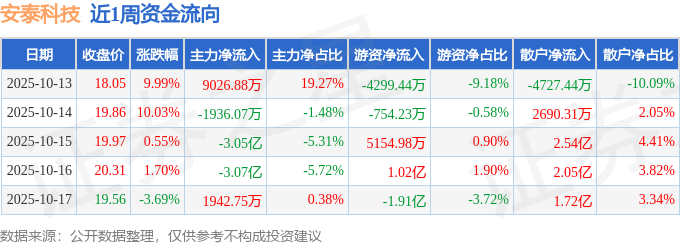 资金流向数据方面,本周安泰科技主力资金合计净流出5.22亿元,游资资金合计净流出8819.96万元,散户资金合计净流入6.1亿元。本周资金流向一览见下表: