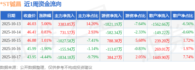 沪深股通持股方面,截止2025年10月17日收盘,*ST铖昌深股通持股数为121.9万股,占流通股比为120.0%。