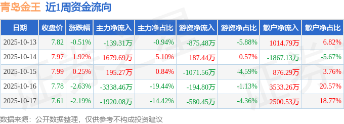 资金流向数据方面,本周青岛金王主力资金合计净流出3522.89万元,游资资金合计净流出2534.85万元,散户资金合计净流入6057.74万元。本周资金流向一览见下表: