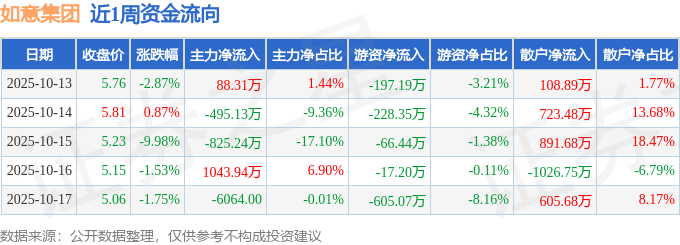 资金流向数据方面,本周如意集团主力资金合计净流出188.73万元,游资资金合计净流出1114.26万元,散户资金合计净流入1302.99万元。本周资金流向一览见下表: